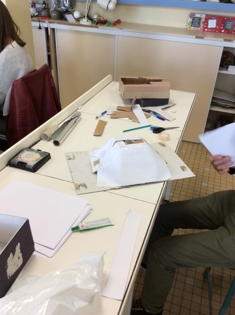 - travail sur la construction des maquettes : 2heures auront été nécessaires pour construire les maquettes. Certaines avaient été bien avancées seulement au bout d’une heure, pour les autres il fallait encore s’appliquer !