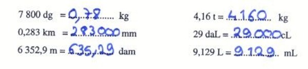 | 0,283 km = ................... mm | 29 daL = ................... cL |