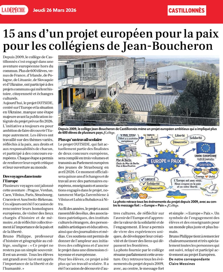15 ans d’un projet sur l’Europe de la paix pour les collégiens de Castillonnès